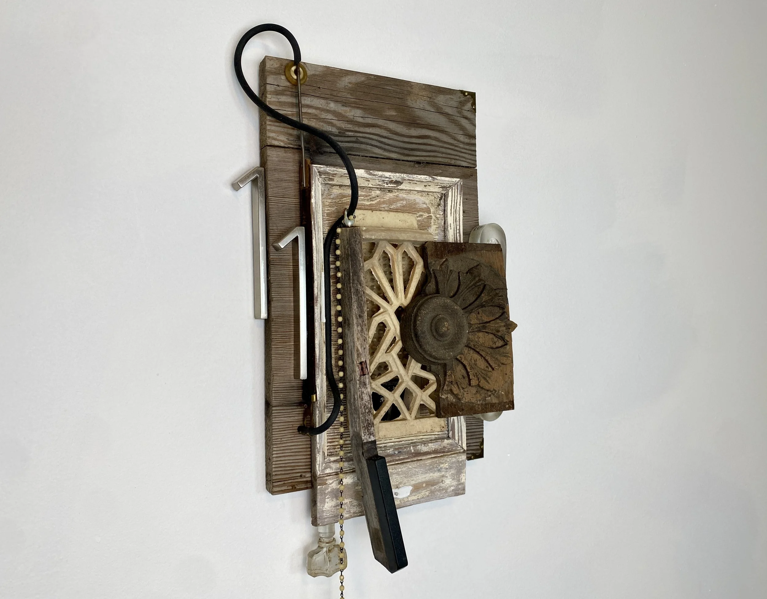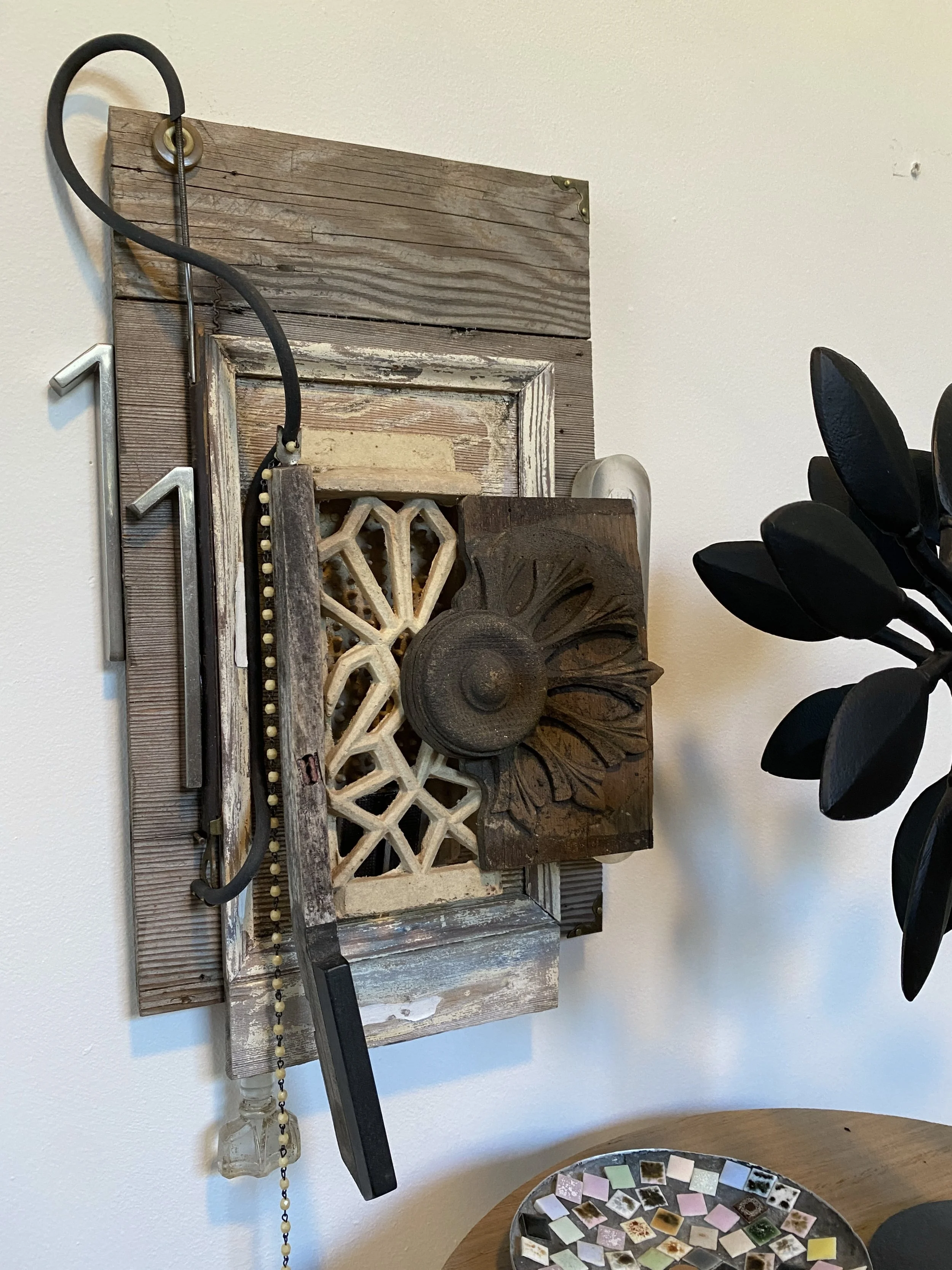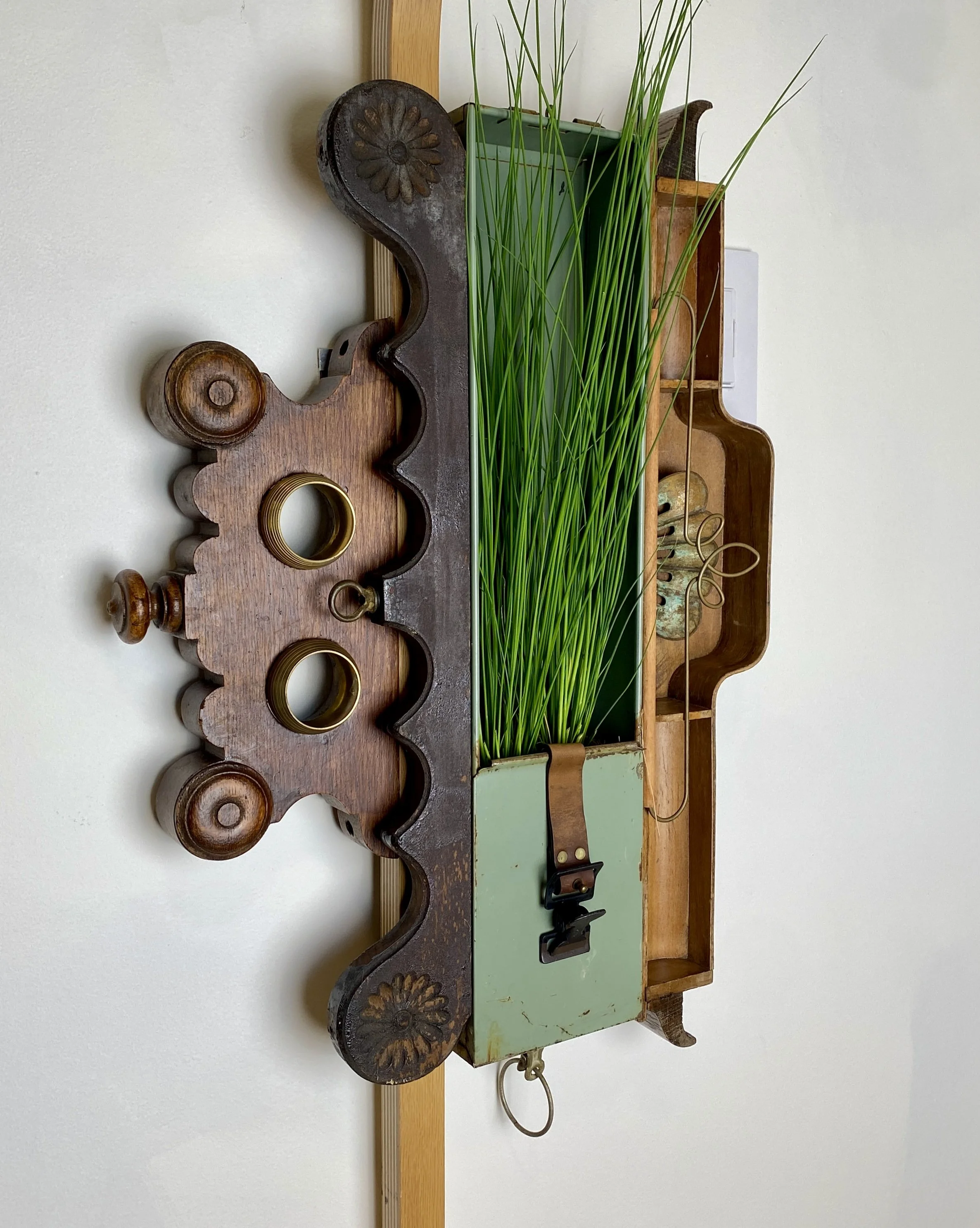 Categories: All Wall Scupltures Table/Shelf Sculptures Floor Sculptures Functional Sculpture Totem Sculpture Series Clock Sculpture Series All | Wall Scupltures | Table/Shelf Sculptures | Floor Sculptures | Functional Sculpture | Totem Sculpture Series | Clock Sculpture Series | Nearly Useless Shelving/Partially Useful Shelving II, 2025 PNW Gallery Wall, 2024 If It Do, 2024 11:1 -New Beginnings, 2025 Assemblage Painting I, 2025 OWNER :: UKRAINE, 2023 Oran and the Grid, 2025 All the Birds and All of the Bees and All the Fish for Millions of Years, 2024 Victoria’s Intercom, 2025 Mid-Industrial I, 2025 Mother, 2025 Squire, 2024 Architectural Feathers, 2024 "You Only" Meditation Mirror, 2024 Monkey Nest, 2024 Optical Nonsense Detection Device, 2023 Gothic Library Guardian 2024 Glass Claw Light, 2025 The Nine Chakras of a Dog, 2025 Freedback, 2024 Precious Time, 2024 Toletych, 2023 Eames Feathers, 2025 TYCOON, 2025 Untitled, 2023 I Love You, You Give Me Fish II, 2024 Unks Vase, 2023 The Eighth Peace, 2025 Wall Planter I, 2024 Mid-Industrial II, 2025 Henpecked/Sea Brick II, 2025 Nature's Caller/Sea Brick I, 2024 Timed Voices, 2024 Fetch, 2024 Twice-Born, 2025 Time Flies, 2025 Grape Crop Guardian, 2025 Tronie's Watch, 2023 Brutal Beggar, 2024 Eastern West, 2024 TOY, 2022 Salters & Scales, 2023 Jasperepiphyte, 2024 SOLD - Untitled, 2024 Sold out Lamped Automation Equipment Testing Device, 2022 Victorian Orbit, 2023 Nearly Useless Shelving/Partially Useful Shelving I, 2023 Nothing But Trouble, 2023 Burtonview, 2023 Philistine Wall Sconce, 2022 Public Art Study #1, 2024 SOLD -Untitled, 2023 Hello, Dame Judi Dench?, 2023 Engiish Flowers for the Less Fortunate, 2023 Black Owl Security Light Stand, 2022 Brown Shepherd, 2022 Empire Runner Miniature, 2023 Doiitamer, 2023 Sailor's Rust Coding Device, 2022 Fruit Coop, 2024 Public Art Study #2, 2024 Public Art Study #3, 2024 Damascus, 2022 SOLD - Untitled, 2023 Victorian Totem Study III, 2023 SOLD - Untitled, 2021 The Agnos Key, 2024 Stealing Thunder, 2023 Lazy Boyd, 2022 Occam's Pendulum Study, 2023 A Time for Floral, 2022 Outland Sights, 2023 Entry Hall Mirror and Table, 2022 Field Sport Kitchen Wall Shelf, 2022 A Jacob Paddle, 2022 Pink and Gold Key Rack, 2022 Trophy Entry Hall Mirror and Tray, 2022 Elizabeth’s Panopticon, 2021 Sideshow Steeple, 2021 IOU, 2022 The Charging Station, 2022 All Hands Drink Table, 2024 Columbia Art Plant Paddle, 2024 Maine's Cross, 2024 Farmers Almanac, 2021 Middle Century Hall Coat Rack with Planter, 2024 Brian’s Eno, 2024