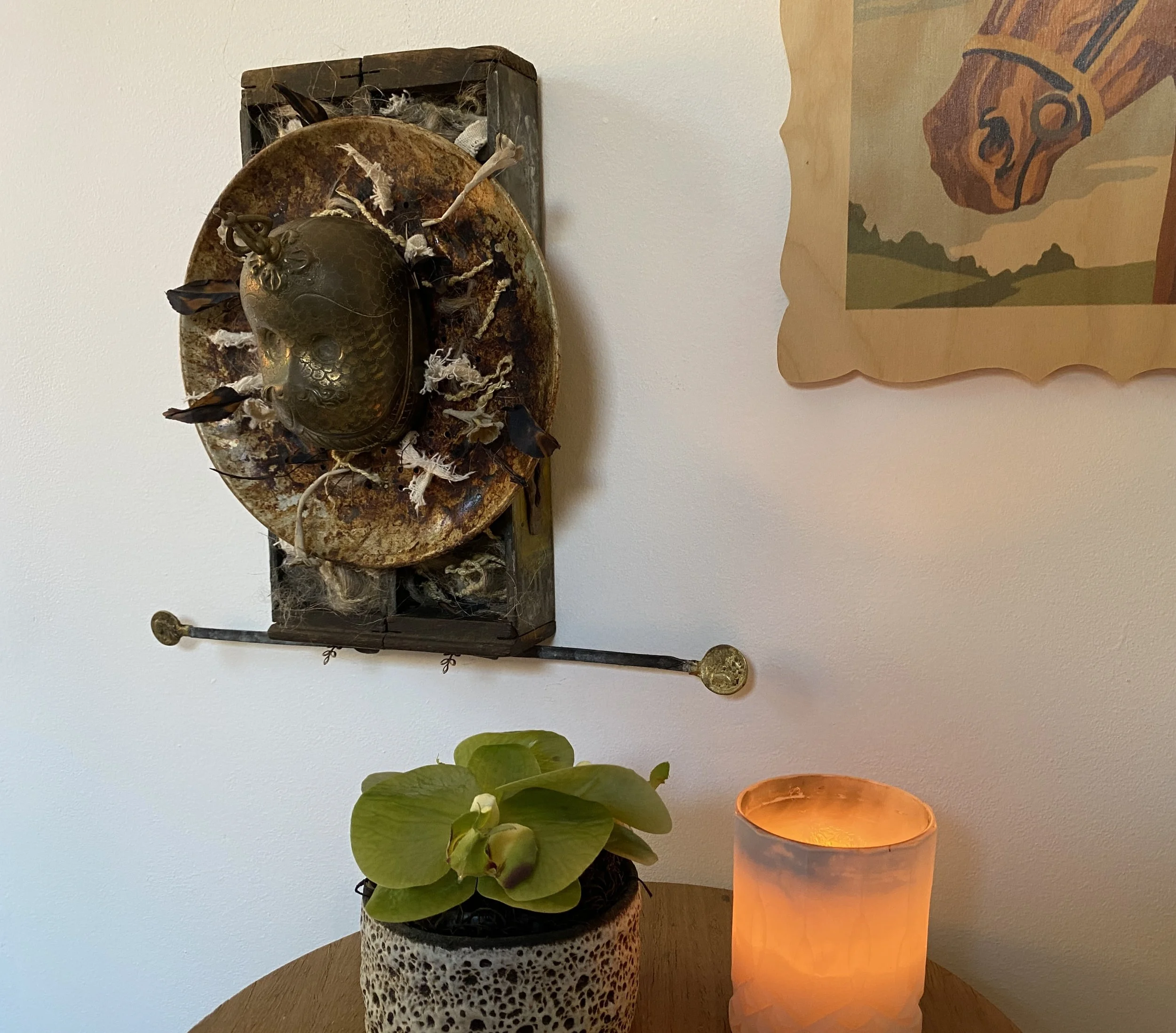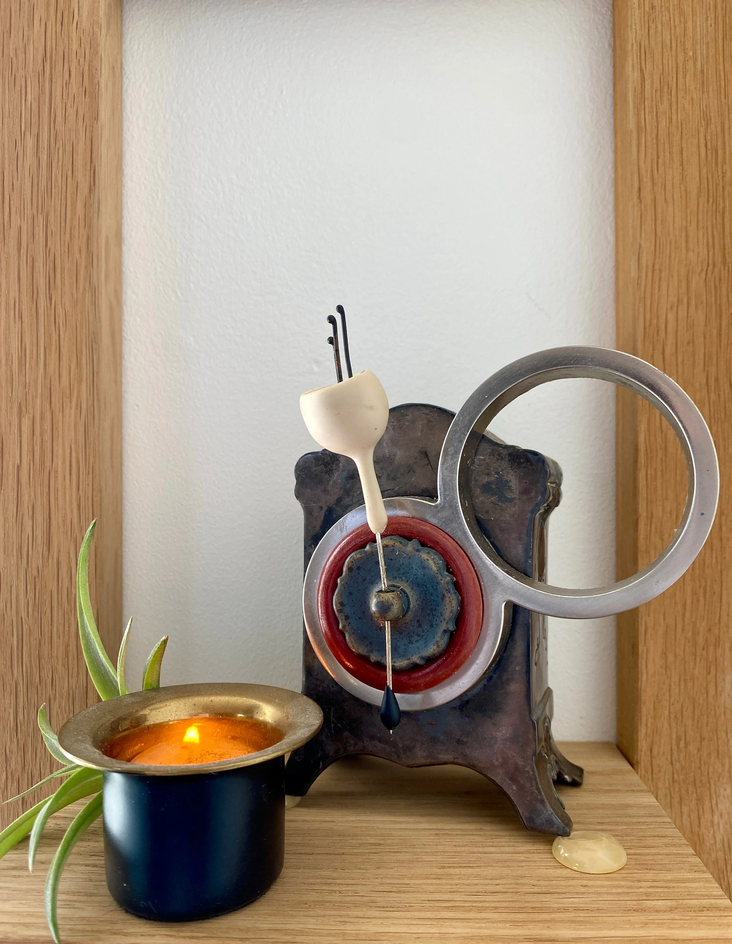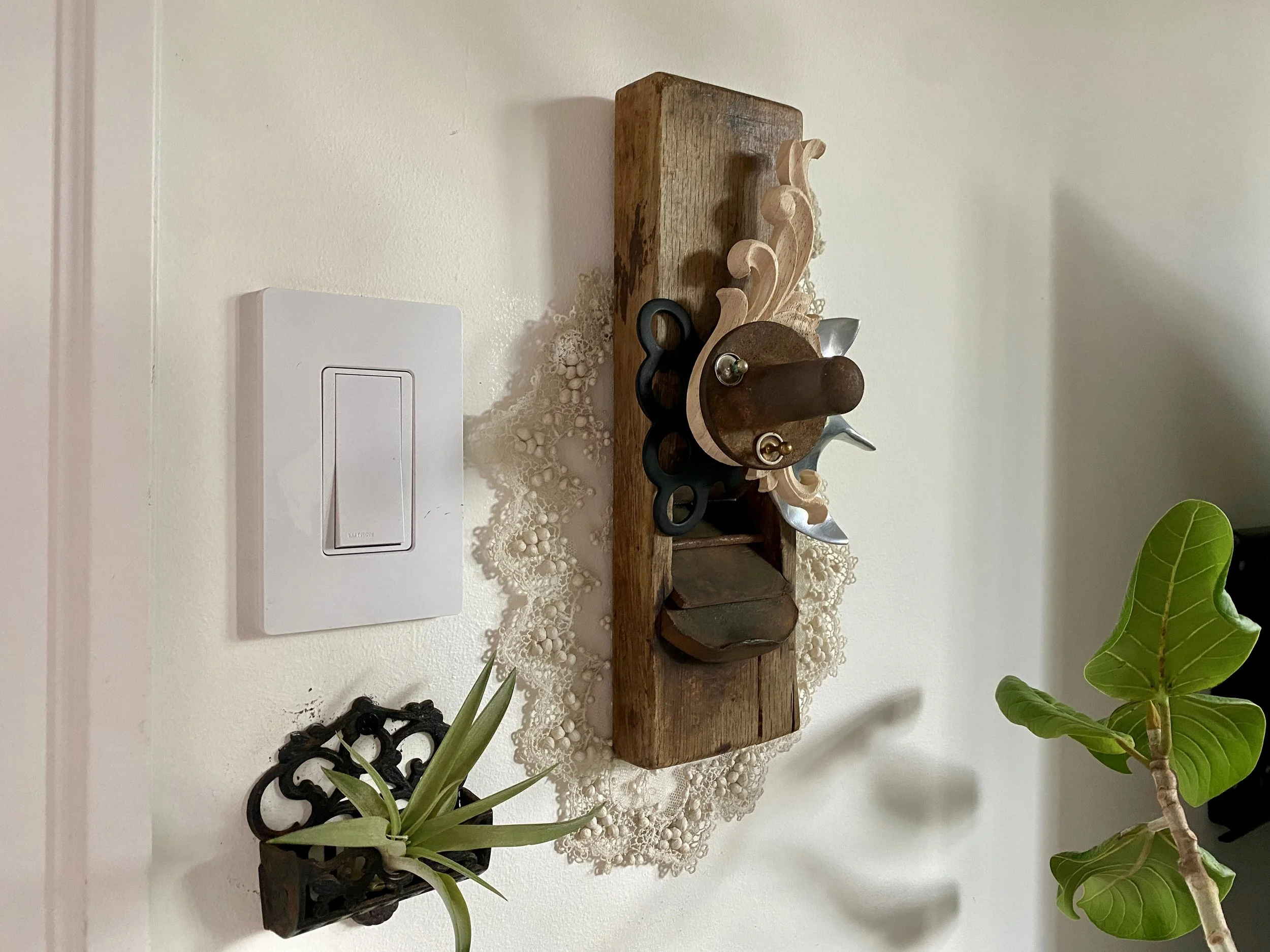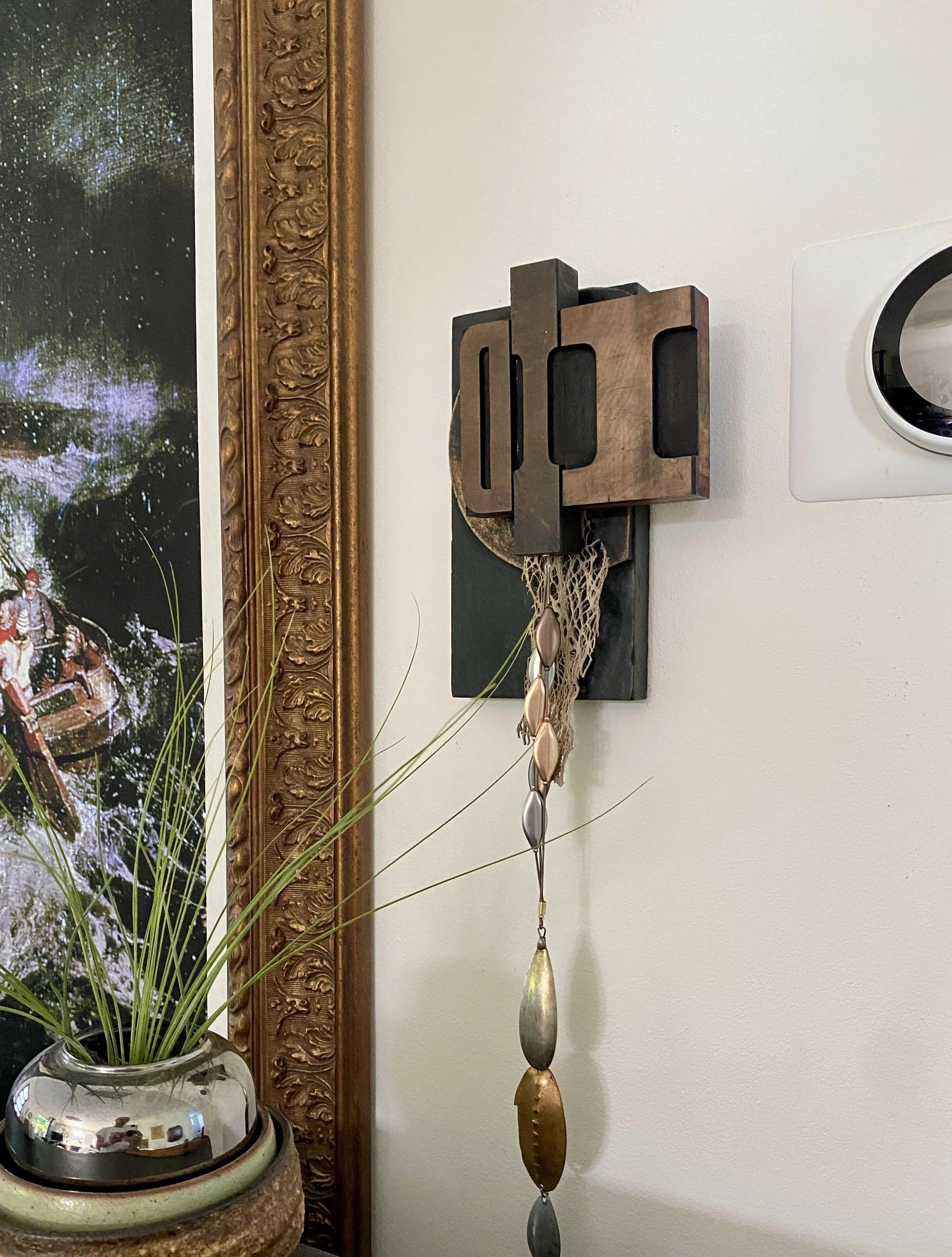 Categories: All Wall Scupltures Table/Shelf Sculptures Floor Sculptures Functional Sculpture Totem Sculpture Series Clock Sculpture Series All | Wall Scupltures | Table/Shelf Sculptures | Floor Sculptures | Functional Sculpture | Totem Sculpture Series | Clock Sculpture Series | Nearly Useless Shelving/Partially Useful Shelving II, 2025 PNW Gallery Wall, 2024 If It Do, 2024 11:1 -New Beginnings, 2025 Assemblage Painting I, 2025 OWNER :: UKRAINE, 2023 Oran and the Grid, 2025 All the Birds and All of the Bees and All the Fish for Millions of Years, 2024 Victoria’s Intercom, 2025 Mid-Industrial I, 2025 Mother, 2025 Squire, 2024 Architectural Feathers, 2024 "You Only" Meditation Mirror, 2024 Monkey Nest, 2024 Optical Nonsense Detection Device, 2023 Gothic Library Guardian 2024 Glass Claw Light, 2025 The Nine Chakras of a Dog, 2025 Freedback, 2024 Precious Time, 2024 Toletych, 2023 Eames Feathers, 2025 TYCOON, 2025 Untitled, 2023 I Love You, You Give Me Fish II, 2024 Unks Vase, 2023 The Eighth Peace, 2025 Wall Planter I, 2024 Mid-Industrial II, 2025 Henpecked/Sea Brick II, 2025 Nature's Caller/Sea Brick I, 2024 Timed Voices, 2024 Fetch, 2024 Twice-Born, 2025 Time Flies, 2025 Grape Crop Guardian, 2025 Tronie's Watch, 2023 Brutal Beggar, 2024 Eastern West, 2024 TOY, 2022 Salters & Scales, 2023 Jasperepiphyte, 2024 SOLD - Untitled, 2024 Sold out Lamped Automation Equipment Testing Device, 2022 Victorian Orbit, 2023 Nearly Useless Shelving/Partially Useful Shelving I, 2023 Nothing But Trouble, 2023 Burtonview, 2023 Philistine Wall Sconce, 2022 Public Art Study #1, 2024 SOLD -Untitled, 2023 Hello, Dame Judi Dench?, 2023 Engiish Flowers for the Less Fortunate, 2023 Black Owl Security Light Stand, 2022 Brown Shepherd, 2022 Empire Runner Miniature, 2023 Doiitamer, 2023 Sailor's Rust Coding Device, 2022 Fruit Coop, 2024 Public Art Study #2, 2024 Public Art Study #3, 2024 Damascus, 2022 SOLD - Untitled, 2023 Victorian Totem Study III, 2023 SOLD - Untitled, 2021 The Agnos Key, 2024 Stealing Thunder, 2023 Lazy Boyd, 2022 Occam's Pendulum Study, 2023 A Time for Floral, 2022 Outland Sights, 2023 Entry Hall Mirror and Table, 2022 Field Sport Kitchen Wall Shelf, 2022 A Jacob Paddle, 2022 Pink and Gold Key Rack, 2022 Trophy Entry Hall Mirror and Tray, 2022 Elizabeth’s Panopticon, 2021 Sideshow Steeple, 2021 IOU, 2022 The Charging Station, 2022 All Hands Drink Table, 2024 Columbia Art Plant Paddle, 2024 Maine's Cross, 2024 Farmers Almanac, 2021 Middle Century Hall Coat Rack with Planter, 2024 Brian’s Eno, 2024